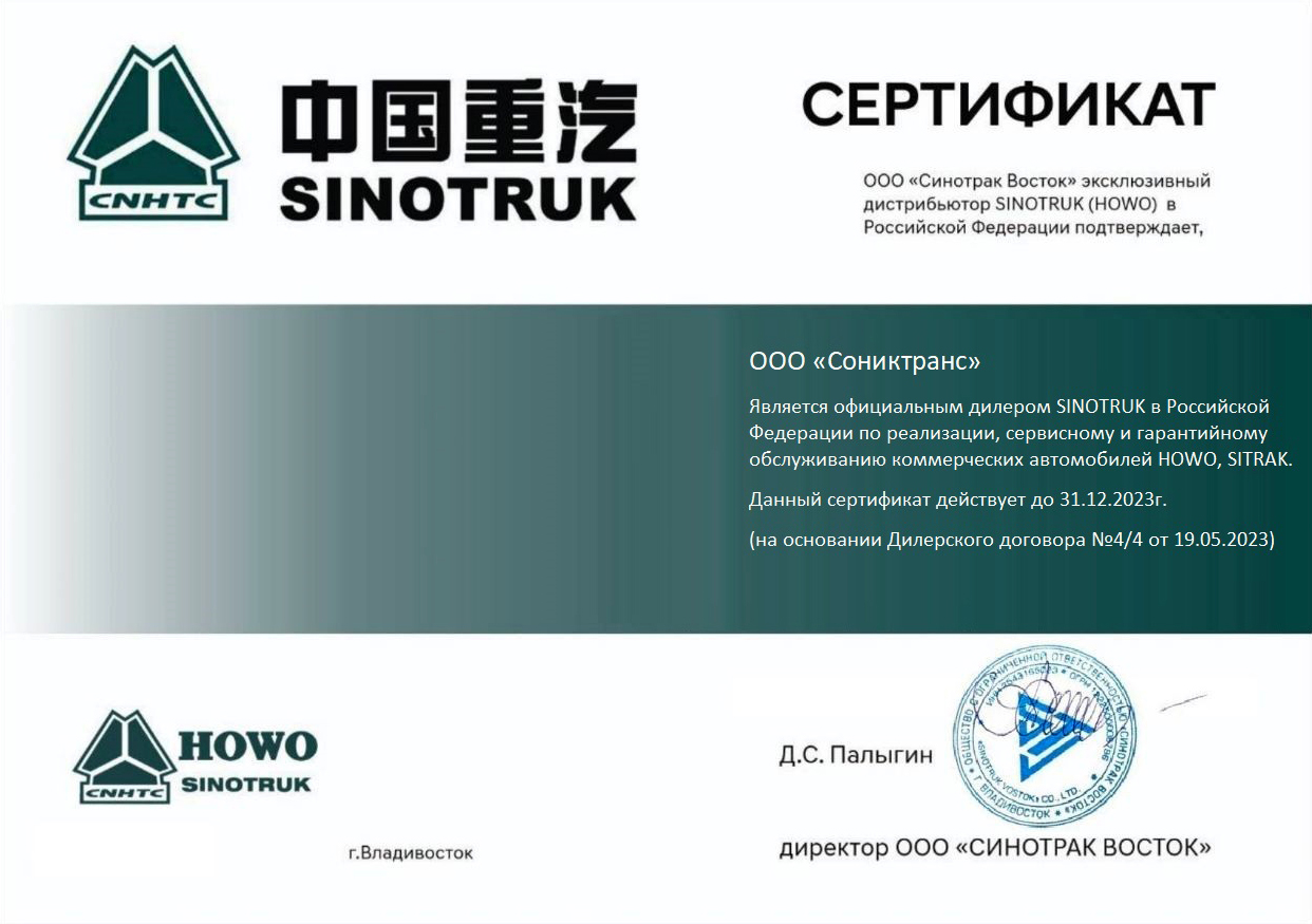 ООО "СоникТранс" является официальным дилером автомобилестроительной корпорации SINOTRUK в России по продаже и сервисному обслуживанию техники Синотрак.